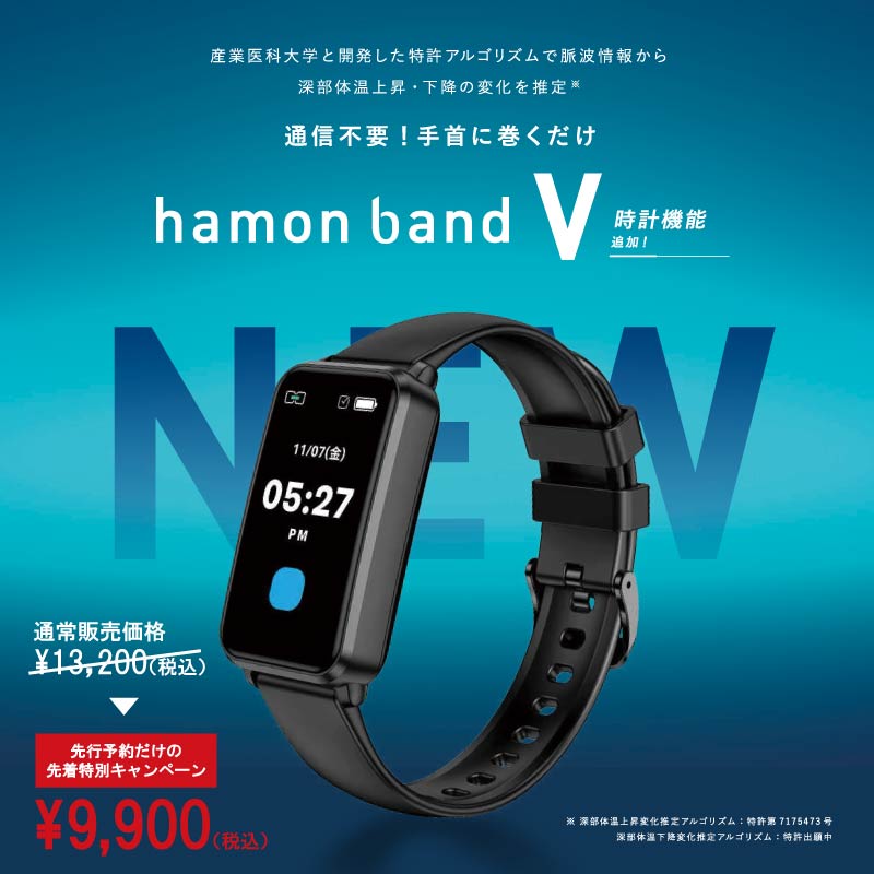 深部体温変化を検知する猛暑対策デバイス「hamon band V」の予約販売をオンラインストアで開始しました。